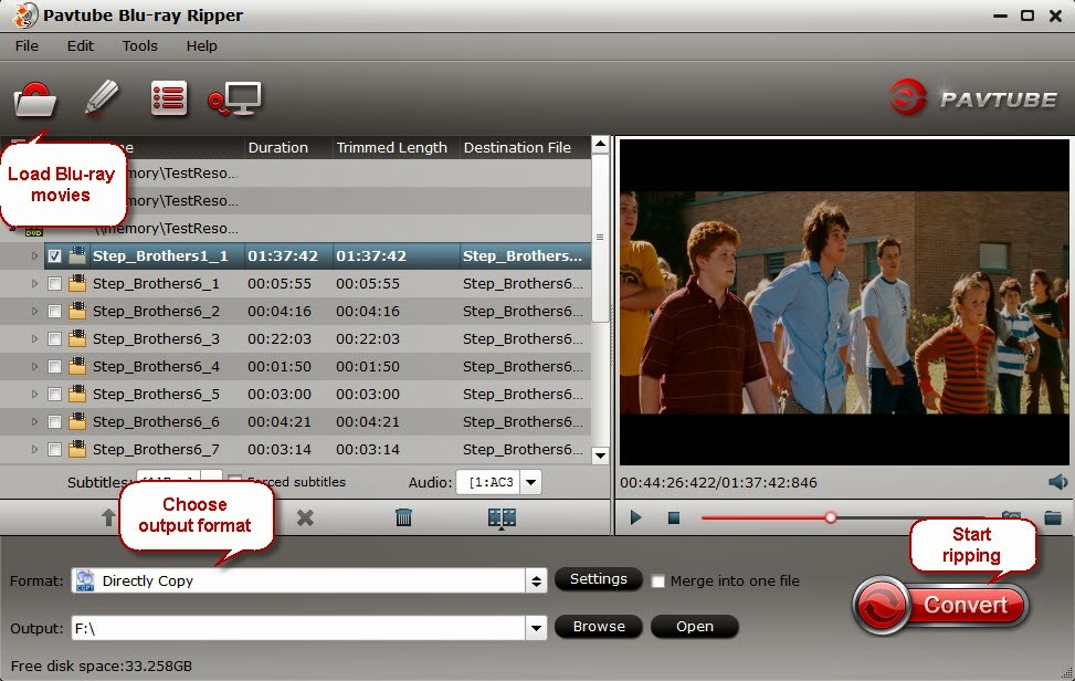 Many Blu-ray movies have multiple audio tracks; do you want to maintain these tracks to have a vivid enjoyment of the original movie? No problem! Pavtube Bytecopy is such a converter that you can easily select your needed tracks, subtitles, as well as chapters.